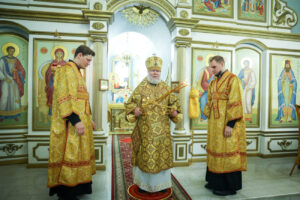 Его Преосвященству сослужили: секретарь епархии, настоятель собора священник Димитрий Сырчин с соборным духовенством.