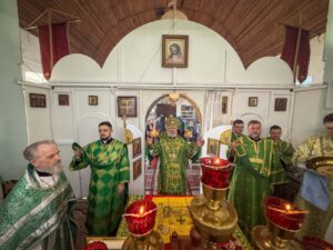 Его Преосвященству сослужили: благочинный Закамского округа, настоятель храма священник Георгий Черепанов, а также клирик Покровского кафедрального собора г. Сарапула диакон Николай Вайсбекер и клирик Воскресенского храма г. Сарапула диакон Герман Остроумов.