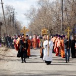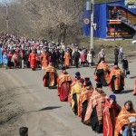 По прибытии поезда от лампады с огнем был зажжен фонарь, который несли священнослужители во главе Крестного хода, прошедшего по улицам города до Покровского кафедрального собора.