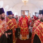 За богослужением ряд клириков за усердное служение Церкви Христовой к празднику Святой Пасхи 2014 года были удостоены Патриарший и архипастырских наград.