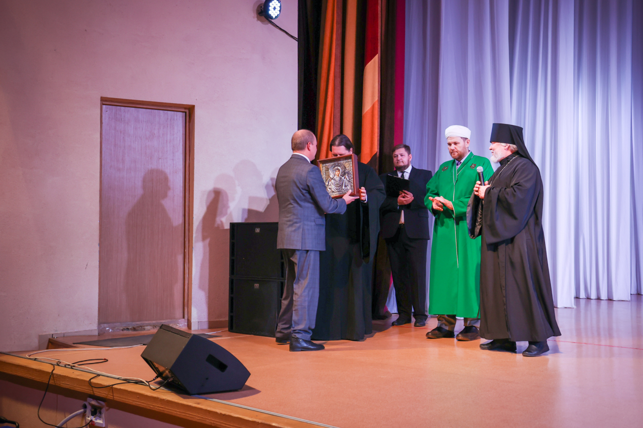 В рамках торжественной части архипастырь вручил председателю Сарапульской городской Думы Сергею Юрьевичу Смолякову икону Покрова Пресвятой Богородицы для передачи ее Главе города В.М. Шестакову. Этот дар стал знаком поздравления Виктора Михайловича с переизбранием на новый срок полномочий и 40-летним юбилеем.