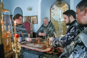Архипастырю сослужили секретарь епархии, настоятель собора священник Димитрий Сырчин, а также клирики кафедрального храма.
