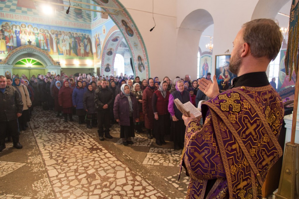 За литургией было совершено освящение нового антиминса для Свято-Михайловского собора г. Можги.