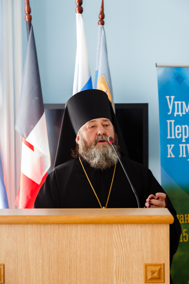 C приветственным словом к участникам форума обратился епископ Сарапульский и Можгинский Викторин, который отметил основные моменты взаимодействия Церкви и государства. Преосвященнейший Владыка особо сказал о социальном партнерстве с государственными учреждениями,а также подчеркнул, что сегодня оно характеризуется как соработничество в решении общественно-значимых социальных проблем. Епископ Викторин предложил шире привлекать представителей церковных общественных организаций к работе в общественных советах разных уровней.