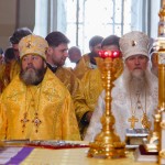 Его Святейшеству сослужили: митрополит Санкт-Петербургский и Ладожский Варсонофий, управляющий делами Московской Патриархии; митрополит Ижевский и Удмуртский Николай; митрополит Тамбовский и Рассказовский Феодосий; митрополит Рязанский и Михайловский Вениамин; митрополит Саратовский и Вольский Лонгин; митрополит Саранский и Мордовский Зиновий; епископ Солнечногорский Сергий, руководитель Административного секретариата Московской Патриархии; епископ Уваровский и Кирсановский Игнатий; епископ Мичуринский и Моршанский Гермоген; епископ Сарапульский и Можгинский Викторин; архимандрит Виктор (Сергеев), избранный и нареченный во епископа Глазовского и Игринского.