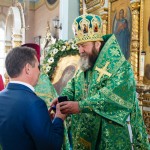 Епископа Викторина приветствовал настоятель храма протоиерей Максим Пислегин, который поблагодарил Владыку за совершенное богослужение и преподнес архипастырю юбилейную медаль в память о 120-летнем юбилее храма.