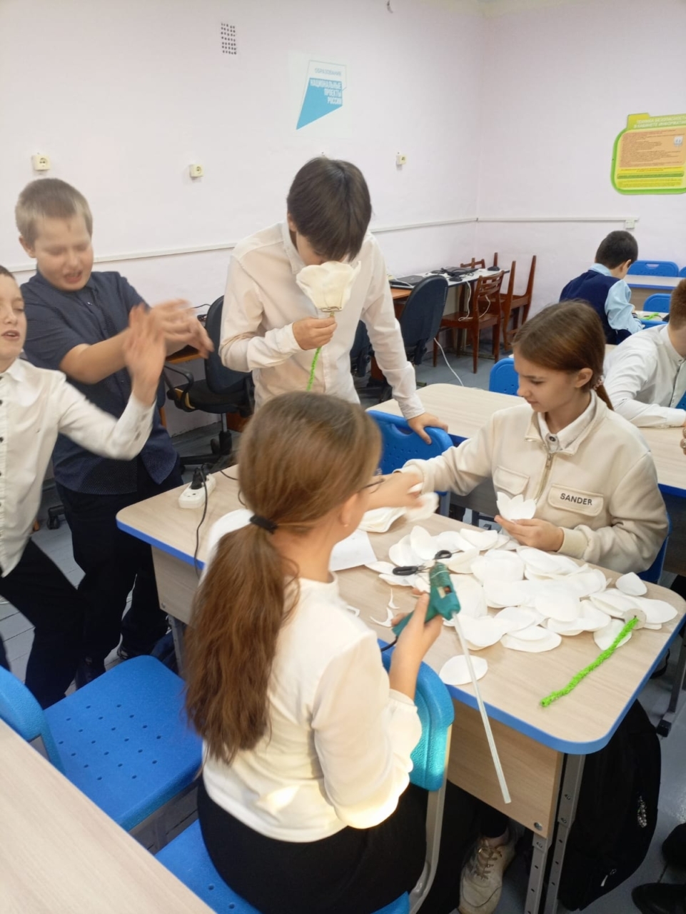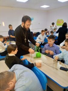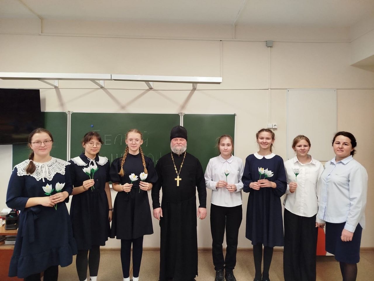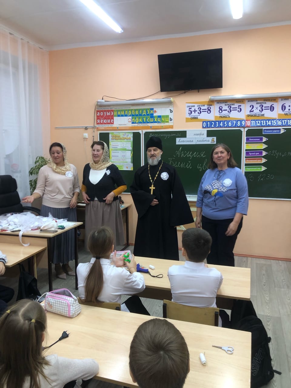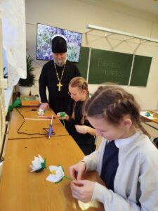 На следующий день, 18 ноября, эстафету принял Лицей №1 им. Н.К. Крупской. Здесь для четвероклассников, изучающих «Основы православной культуры», был проведен открытый урок. Благочинный Закамского округа, настоятель храма Первоверховных апостолов Петра и Павла иерей Георгий Черепанов познакомил детей с историей акции, берущей начало в 1911 году. Затем под руководством учителей и прихожанок Петропавловского храма ребята приступили к творческой части — созданию цветков из белой ткани, вложив в свою работу частичку души, терпение и доброту.