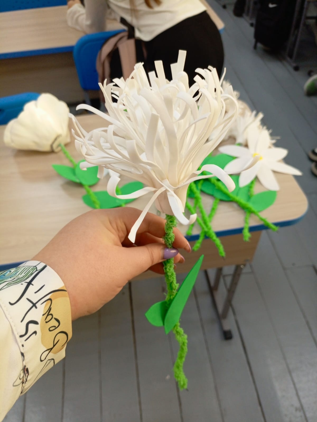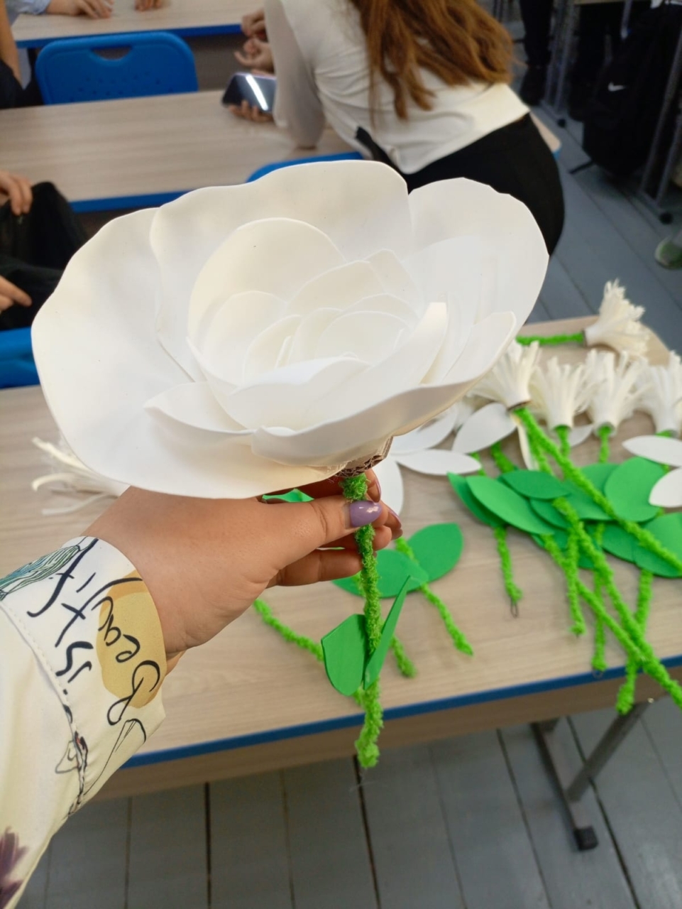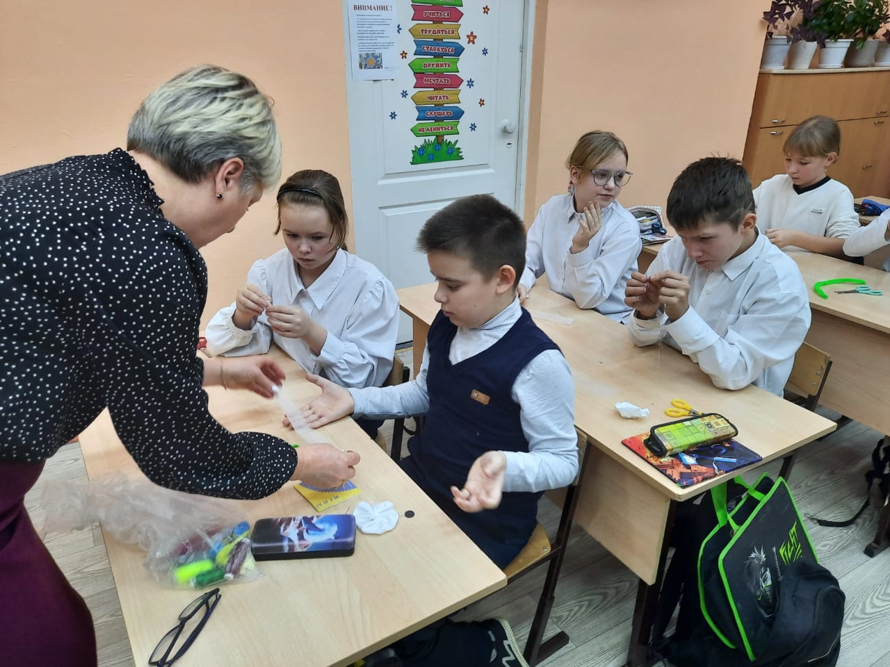 На следующий день, 18 ноября, эстафету принял Лицей №1 им. Н.К. Крупской. Здесь для четвероклассников, изучающих «Основы православной культуры», был проведен открытый урок. Благочинный Закамского округа, настоятель храма Первоверховных апостолов Петра и Павла иерей Георгий Черепанов познакомил детей с историей акции, берущей начало в 1911 году. Затем под руководством учителей и прихожанок Петропавловского храма ребята приступили к творческой части — созданию цветков из белой ткани, вложив в свою работу частичку души, терпение и доброту.