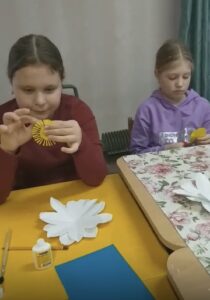 Добрые дела объединили и сельские территории. Учащиеся 4-х и 7-х классов Удмурт-Тоймобашской школы Алнашского района вместе с настоятелем Никольского храма священником Виктором Кузьминым и педагогами мастерили белые цветы, узнав от него об истории благотворительной акции. А в селе Каракулино воспитанники воскресной школы при Пантелеимоновском храме под руководством благочинного Каракулинского округа протоиерея Евгения Ядрова совместно со взрослыми создавали символы милосердия.