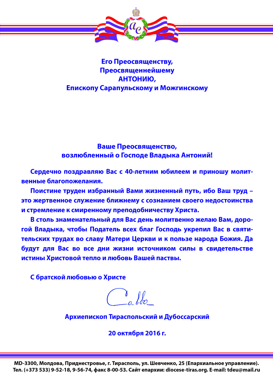 pozdravlenie Опубликовано 21.10.2016 932 × 1280 Поздравления епископу Сарапульскому и Можгинскому по случаю 40-летия ← Пред. След. → Просмотров (8)