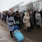 Верующие Можги встретили икону на въезде в город и на руках пронесли ее до Михайловского собора. Крестный ход возглавил благочинный Можгинского района игумен Вениамин (Крюков).