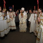 За Пасхальной заутреней Преосвященнейший Владыка прочитал Слово огласительное святителя Иоанна Златоуста на Святую Пасху, которое уже более полутора тысяч лет звучит в храмах.