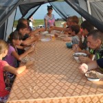 Ребята и родители поучаствовали в стрельбах из пневматических винтовок, играли в футбол и занимались рыбалкой .День закончился вкусным ужином. Вечером за чаем у костра священник Сергий Петров, настоятель храма села Грахово провел беседу о вере, церкви и смысле жизни.