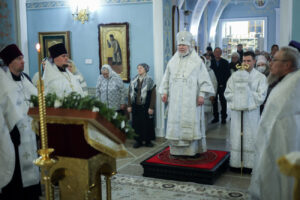 Его Преосвященству сослужили: секретарь епархии, настоятель собора священник Димитрий Сырчин, духовенство кафедрального храма.